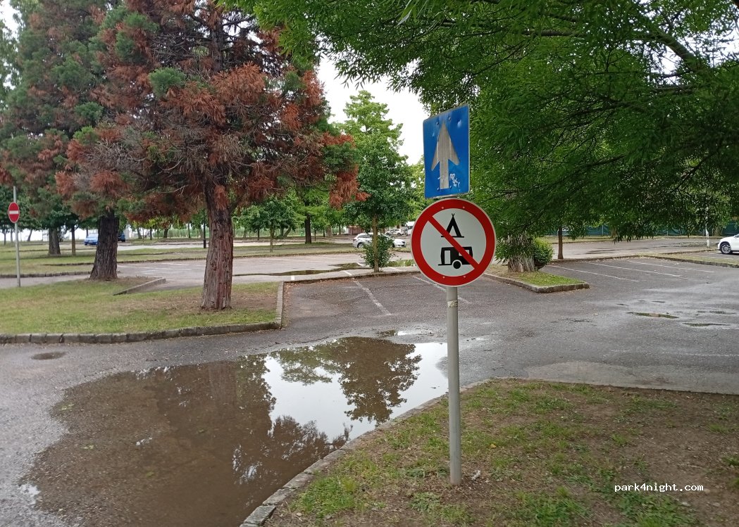 Super parking municipal gratuit jour et nuit. C'est le parking de la plage qui elle est payante: 1000 FT/pers de 8h00 a 19h00 ensuite accès gratuit. C'est très propre, c'est grand et animé avec toutes les commodités : restaurant, bars, transat fixé au sol, balancelle, animation pour enfants, etc... Animé le soir mais pas trop bruyant. A recommander, parfait.