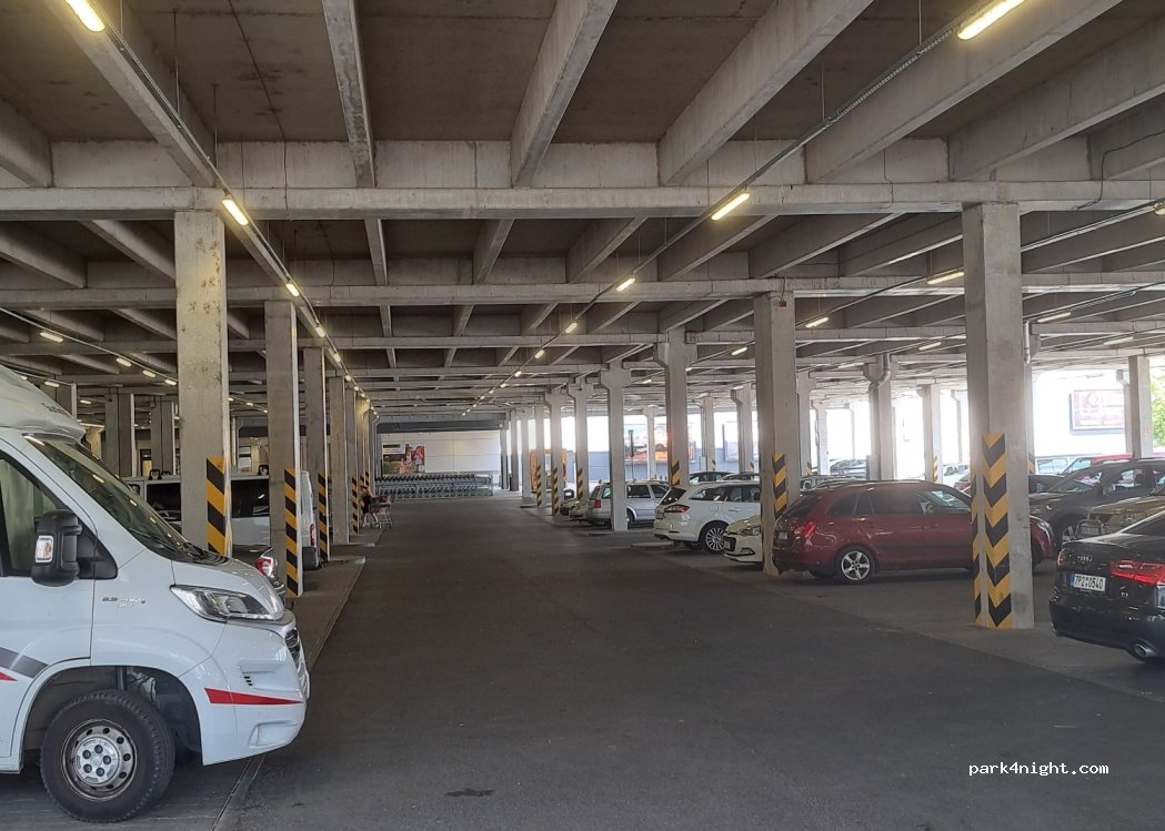 Parking del hipermercado Kaufland y otras tiendas. Muchas plazas de parking para vehículos hasta 3,5 toneladas para poder hacer la compra y visitar Pilsen, con su plaza principal a menos de un km. andando. El parking tiene un espacio cubierto donde caben vehículos hasta 4,5m. de altura. Muy recomendable para visitar la ciudad y hacer compra de víveres.
