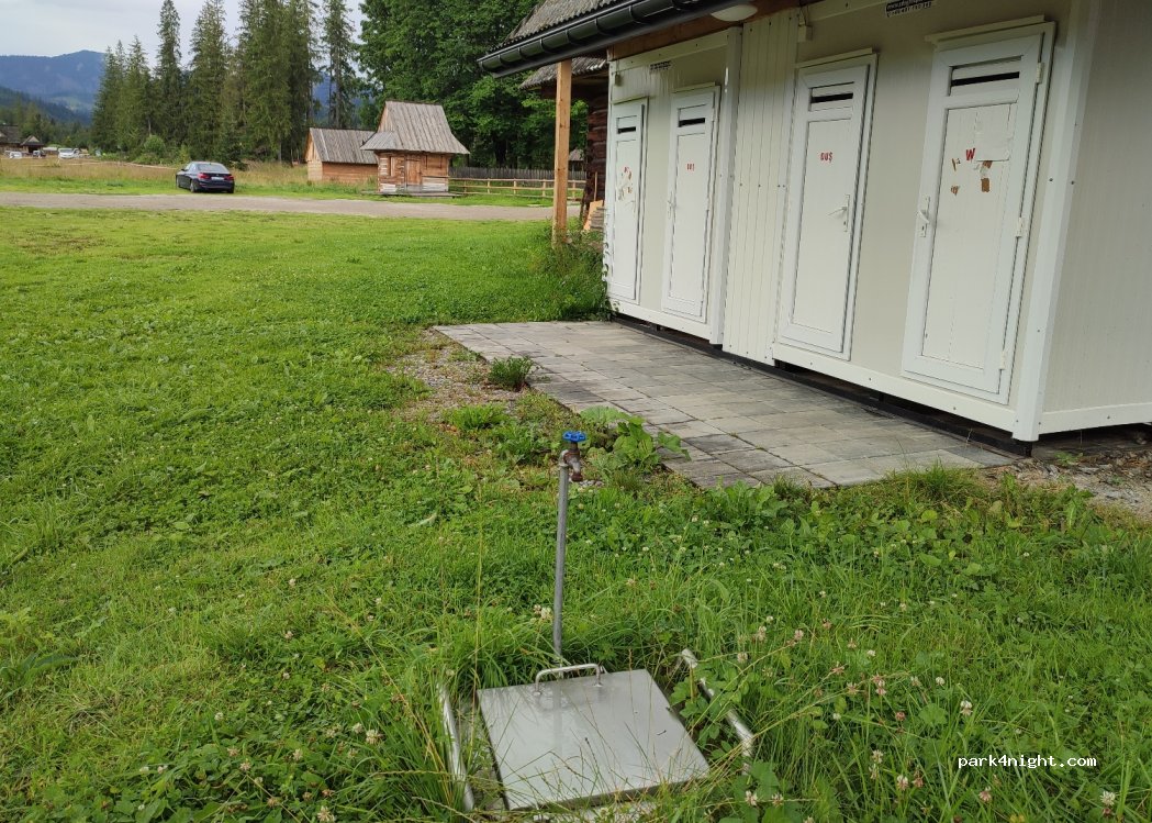 The camper park has a toilet, washing machine, clothes dryer, dirty water disposal, chemical toilet, and a place to fill up with clean water.