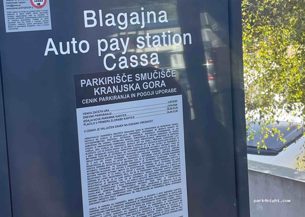 Passé à l'office du tourisme et ils ont dit que c'était un parking privé. Ils ne se sont pas prononcés sur le fait si on pouvait y dormir ou pas. Nous y sommes restés une nuit, ainsi que 6 autres van/camping cars et avons payé 24€ pour être resté de 16h à 14h le lendemain. Très chouette pour profiter de Kransjka Gora le soir.