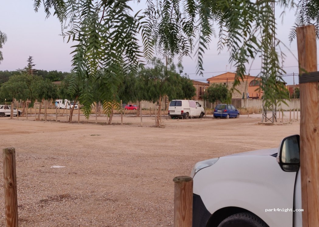 Un amplio estacionamiento frente a un campo de fútbol. Hay algunos autos chatarra aquí, por lo que ni siquiera se destacan. Sin señalización que prohíba, señalizado como parking. Relativamente cerca de una carretera de salida de la ciudad, pero el tráfico es limitado y hay estacionamiento disponible a unos 50 m de la carretera. No es especialmente bonito, pero es relativamente tranquilo entre el campo, el campo de fútbol y la calle.