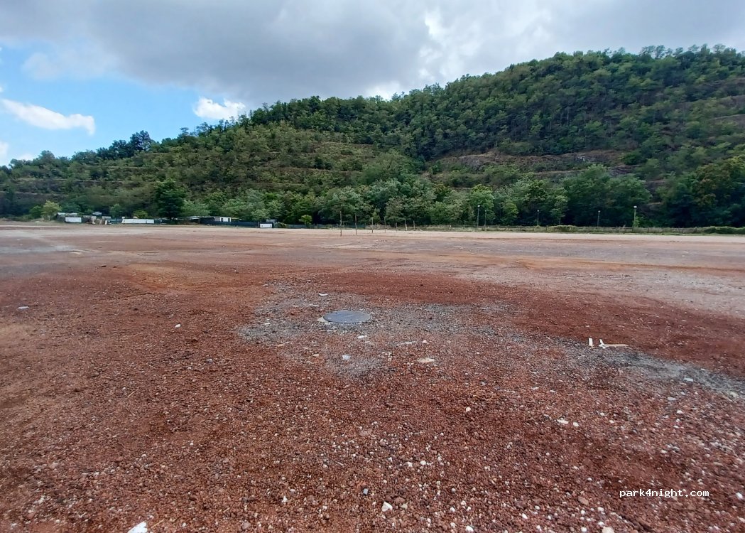 Riesiger ebener Parkplatz mit Hundewiese? Einheimische parken hier ihre Wohnmobile. Die Straße ist laut, vielleicht Nachts aber ruhiger. Wir kamen nur fürs Wasser. Der Wasserhahn befindet sich allerdings bei der Bushaltestelle vor dem Parkplatz, nicht darauf, aber Park-/Haltefläche vorhanden.