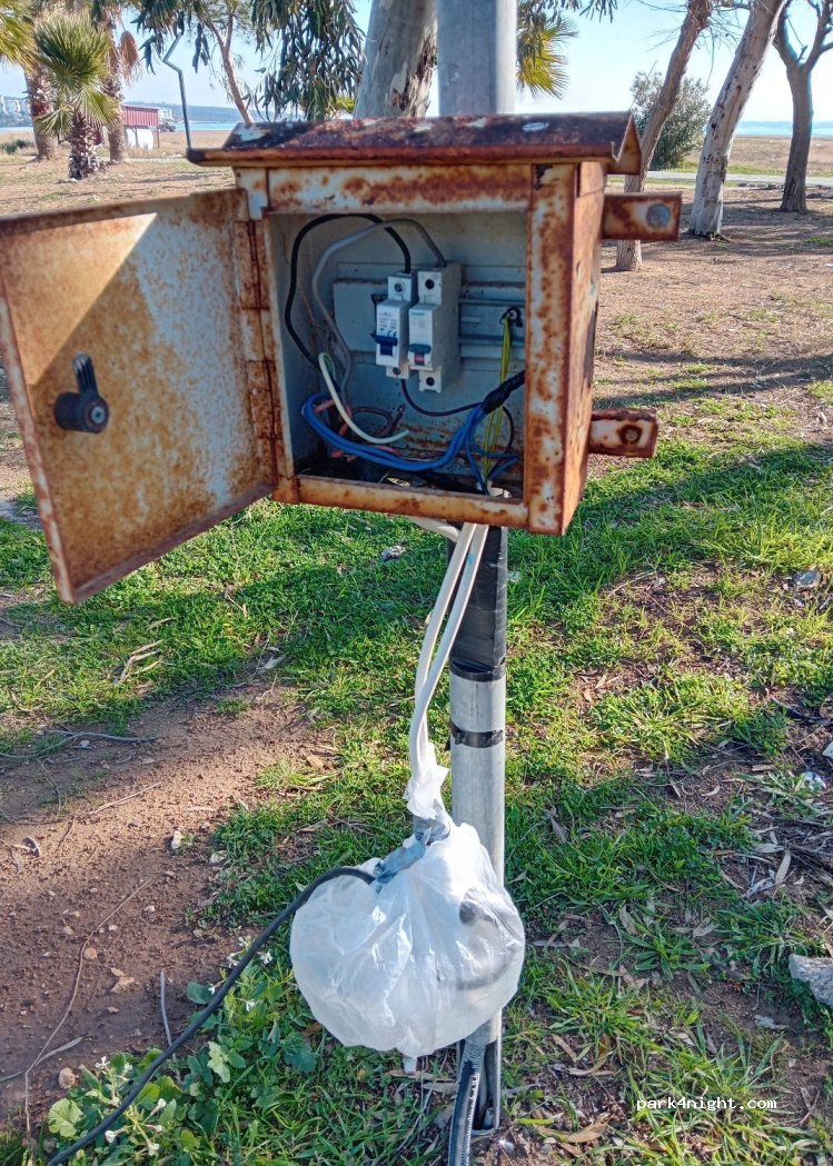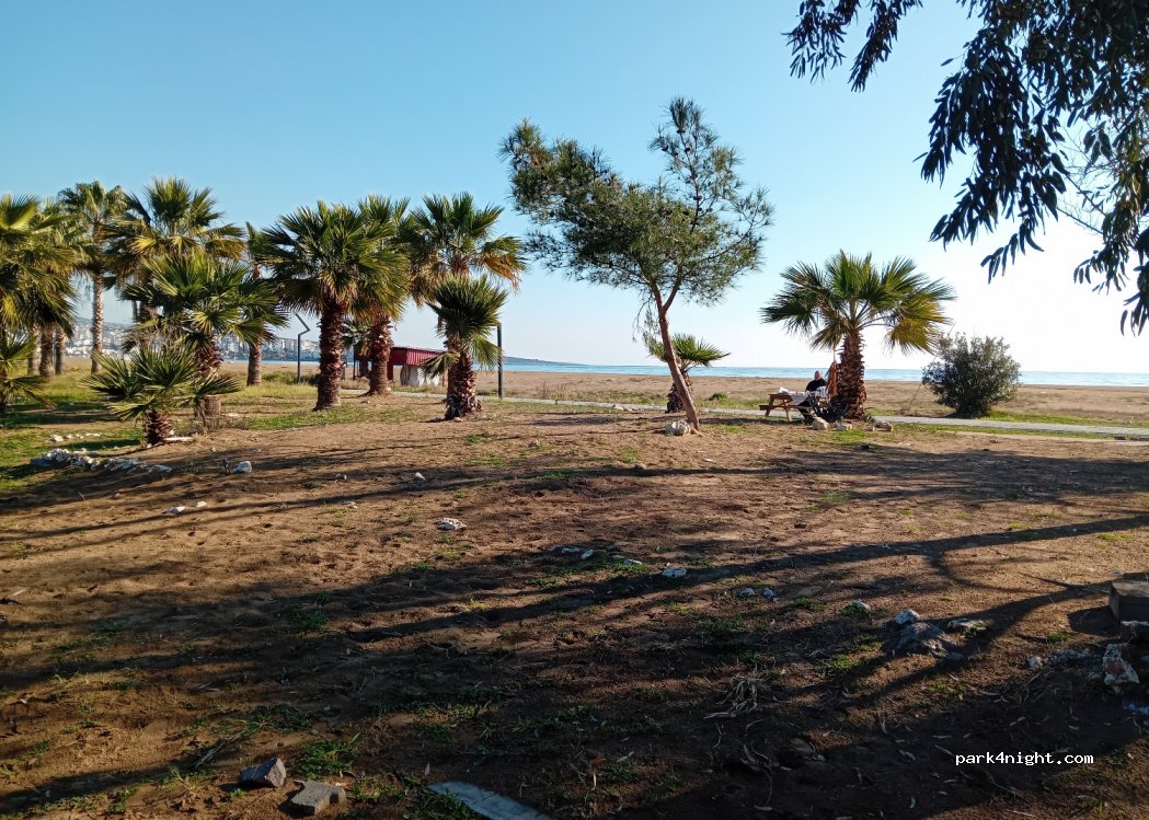 Муниципальный парк, очень большая территория. Пляж понравился, но есть мусор. Розетки расположены хаотично и не совпадают с подводками воды. Асфальт уже раздолбан. 300 лир караван. Туалеты хорошие