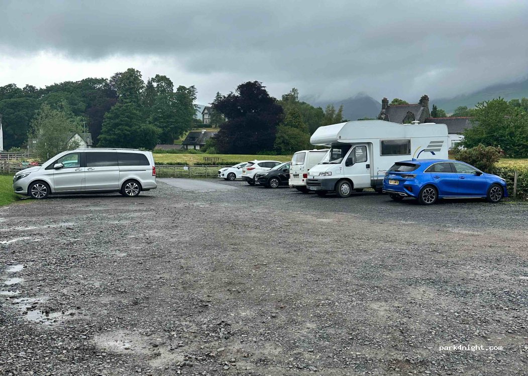 Gravel parking area belonging to the Keswick FC. Pay by honesty box. Behind Derwent pencil museum and short walk along the river or around the main road to the High St & shops. No overnight parking allowed.