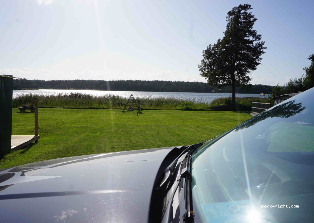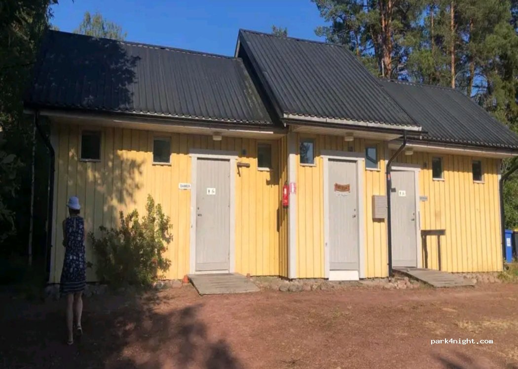 Kattnäs Camping is a quiet and beautiful place for an overnight stay, or for two. Everything you need is there: freshwater, blackwater. Showers with cold water, hot water for €1, toilets, and a kitchen. Prices on the website (not all current). Laundry costs €10, plus a dryer costs €5.