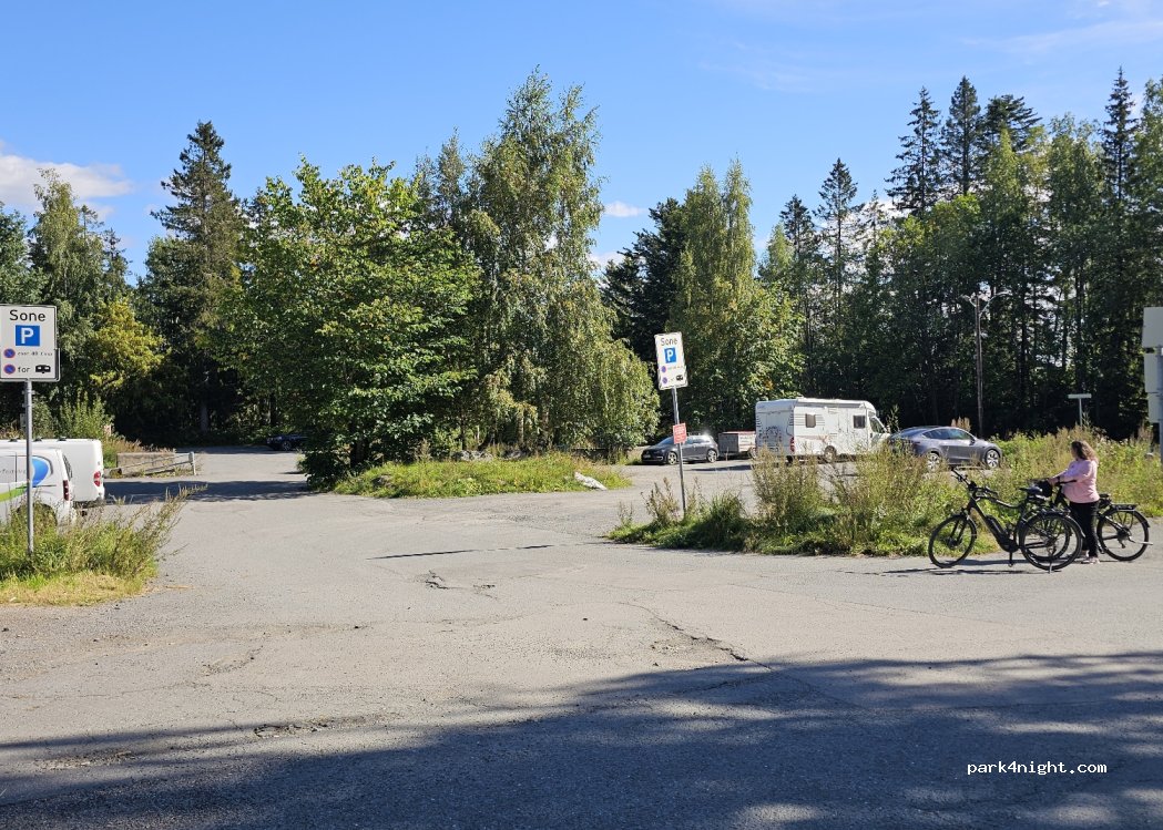 Free parking. No caravans. The train to the city is nearby, so good for day trips. Right next to the road so really noisy. The parking lot is fully visible from the street