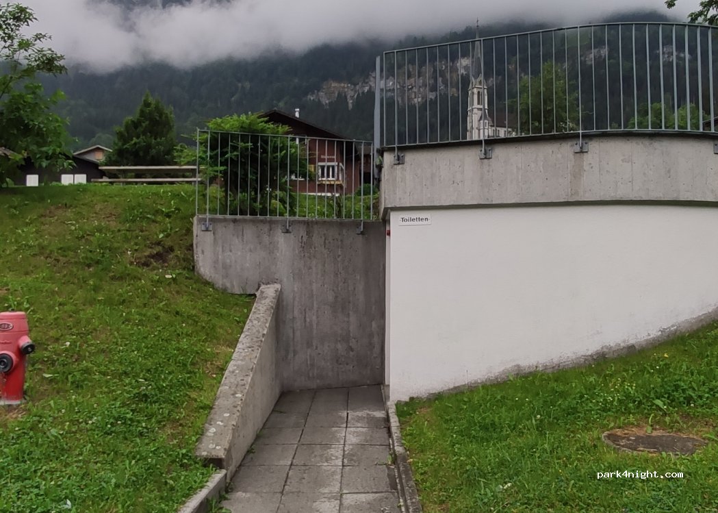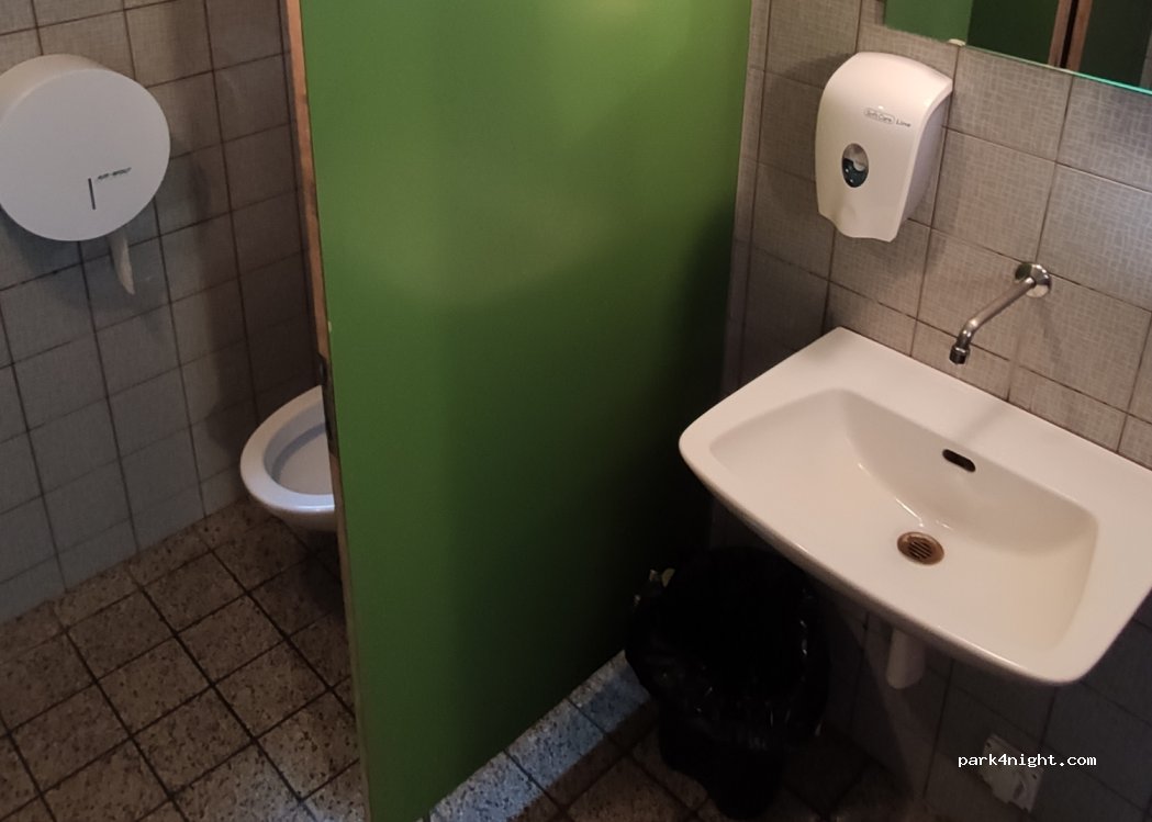 Here you will find a public toilet open 24/7. Very clean and has nice cold tap water which you can drink. It also has a nice view of the Lake!