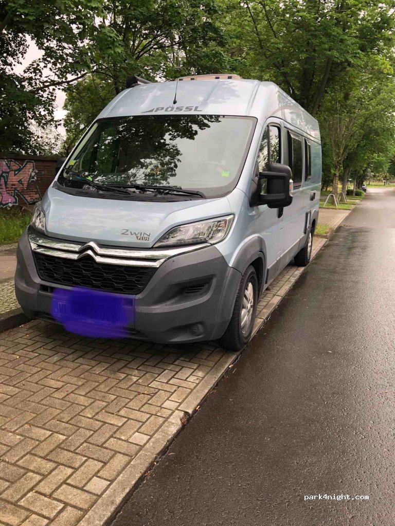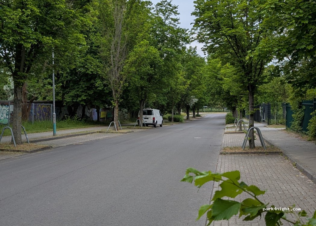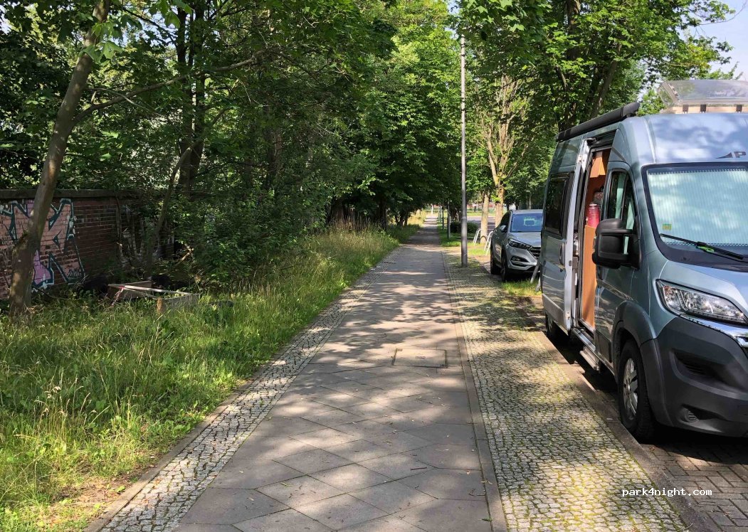 Parked for 2 nights to visit Berlin. Quiet road, feels very safe. Both nights quiet and undisturbed and the van was safe for full day whilst we cycled in.