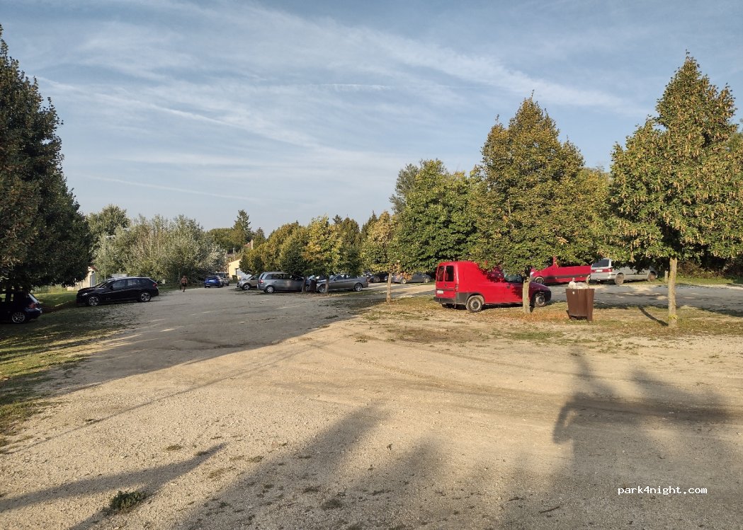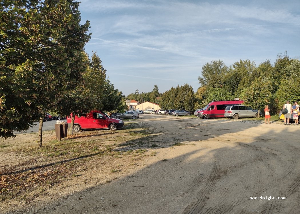 Endroit parfait,nous y avons passé 3 nuits. De l'ombre également au fond du parking,très calme la nuit. Nous avons pris le train pour visiter Budapest (15 euros à 4 Aller retour pour 1h20 de trajet).Très pratique.