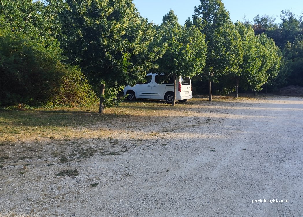 Veľké parkovisko aj pre väčšie karavany. Čiastočne v tieni. 100m po bezplatnú pláž. Poblíž obchod a bar. V noci prejde pár vlakov ale nieje to nič hrozne. Verejné WC je pri pláži .