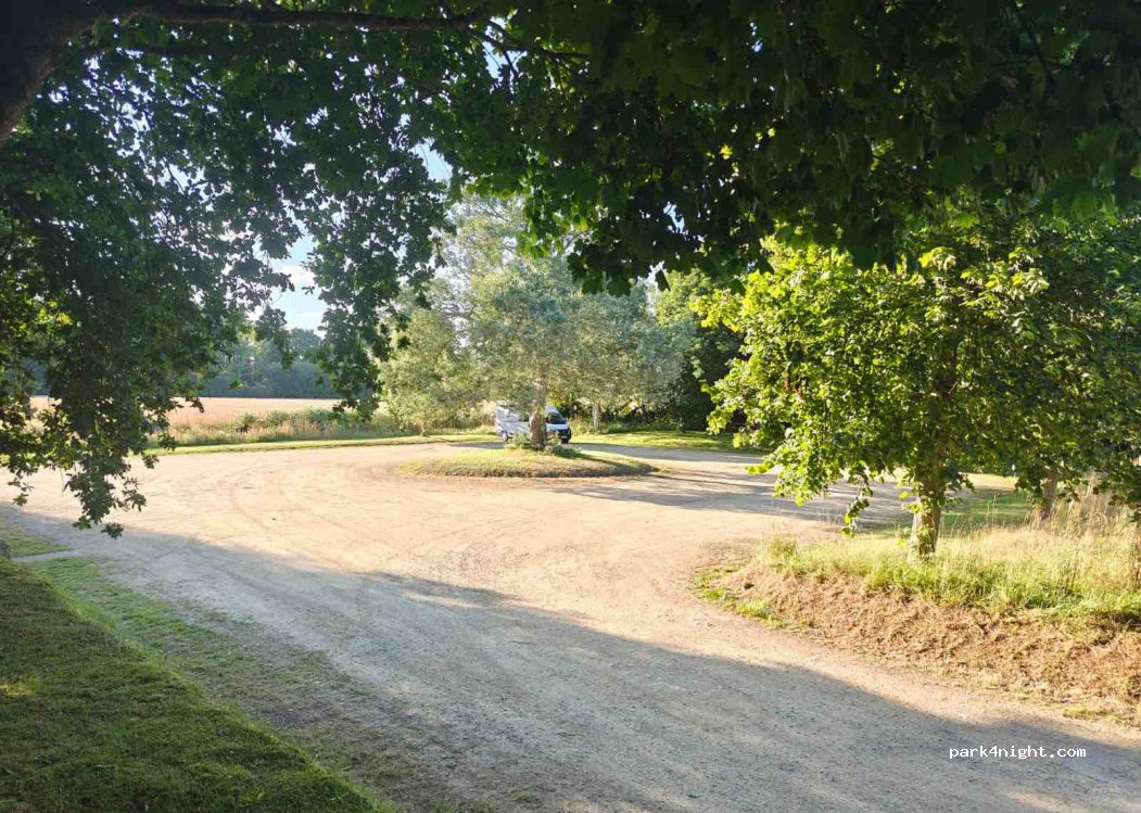 un grand merci à la commune de mettre une telle aire à disposition. Nous y avons passé 2 nuits geniales,les 26 et 27 juin 2023. Parking plat, tables de pique nique, WC propres,poubelle, dans un super cadre,avec une magnifique chapelle, surtout son porche,car nous n'avons pas visité l'intérieur encore merci