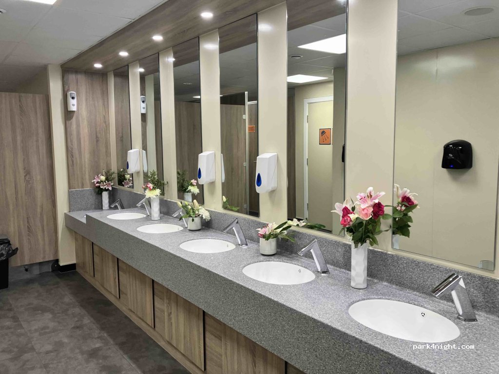 Lovely clean hot shower in women's toilets, assume same in men's, no need to leave a key like Kinross. Staff very nice!