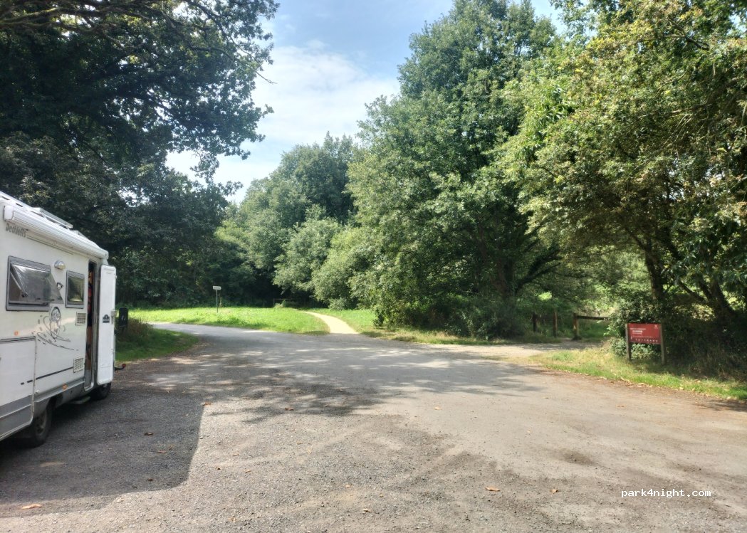 Super spot en gravier, dans la forêt, au calme et à la fin d'un cul de sac. Attention à la localisation exacte : 48,1668656, -1,5602192 Sinon google vous enverra loin sur une route interdite à la circulation.