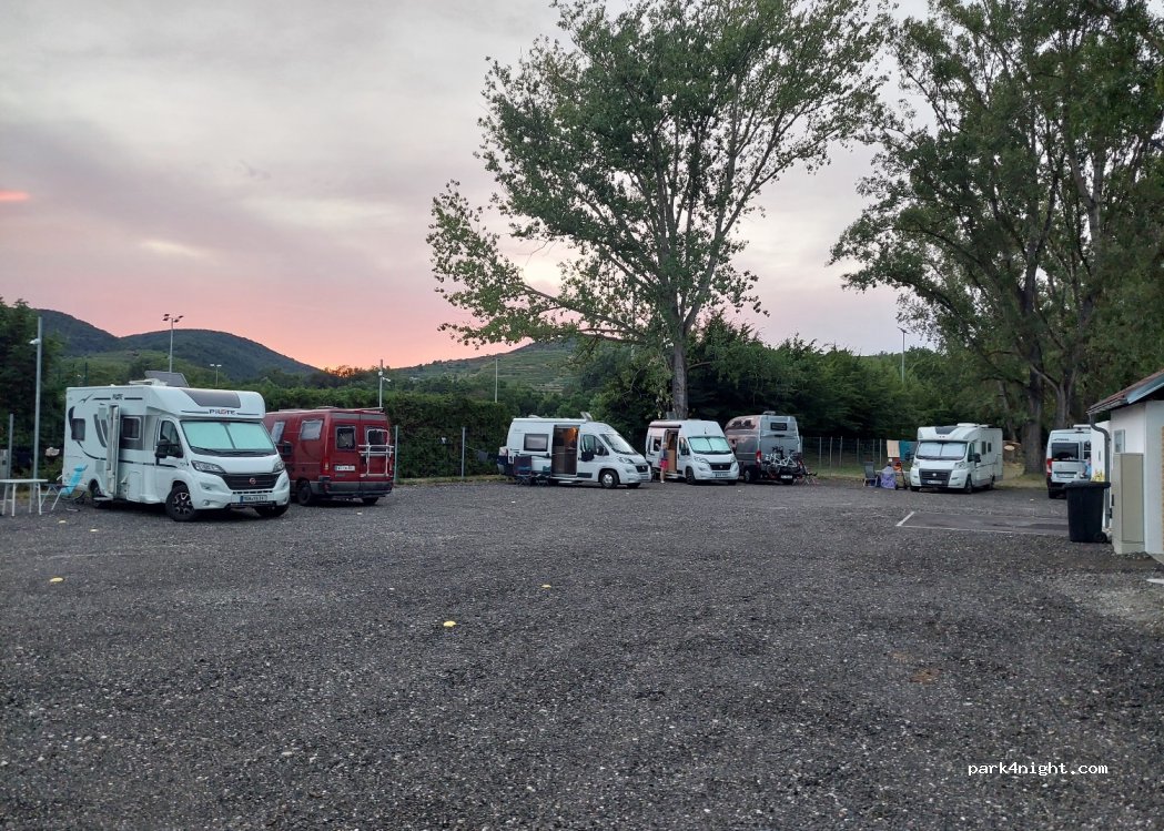 Camping in Krems was full so we take this stell platz. Only granit surface but there is possiblity go to next grassy area with small pub, children playground and pond. There is no place to wash dish. Shower and toilets are in containers with hot water. Good for campervans but neither for vans.