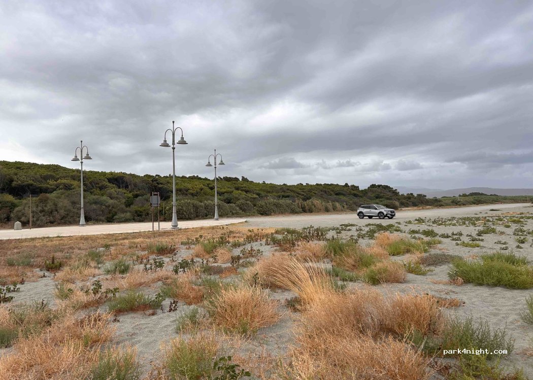 Parcheggio gratuito a 2 passi dalla spiaggia, bellissimo e tranquillo. Purtroppo è difficile riuscire ad arrivare sulla spiaggia con il proprio camper causa troppa sabbia sul sentiero, ma è possibile parcheggiarlo lungo la strada sterrata parallela alla spiaggia e visibile da essa.
