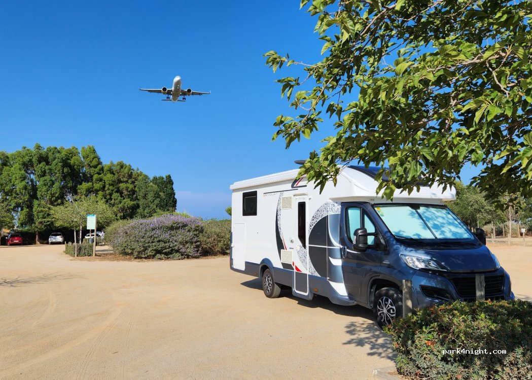 Estacionamiento al principio/final de la pista donde los aviones vuelan sobre ti tan cerca que puedes tocarlos.
