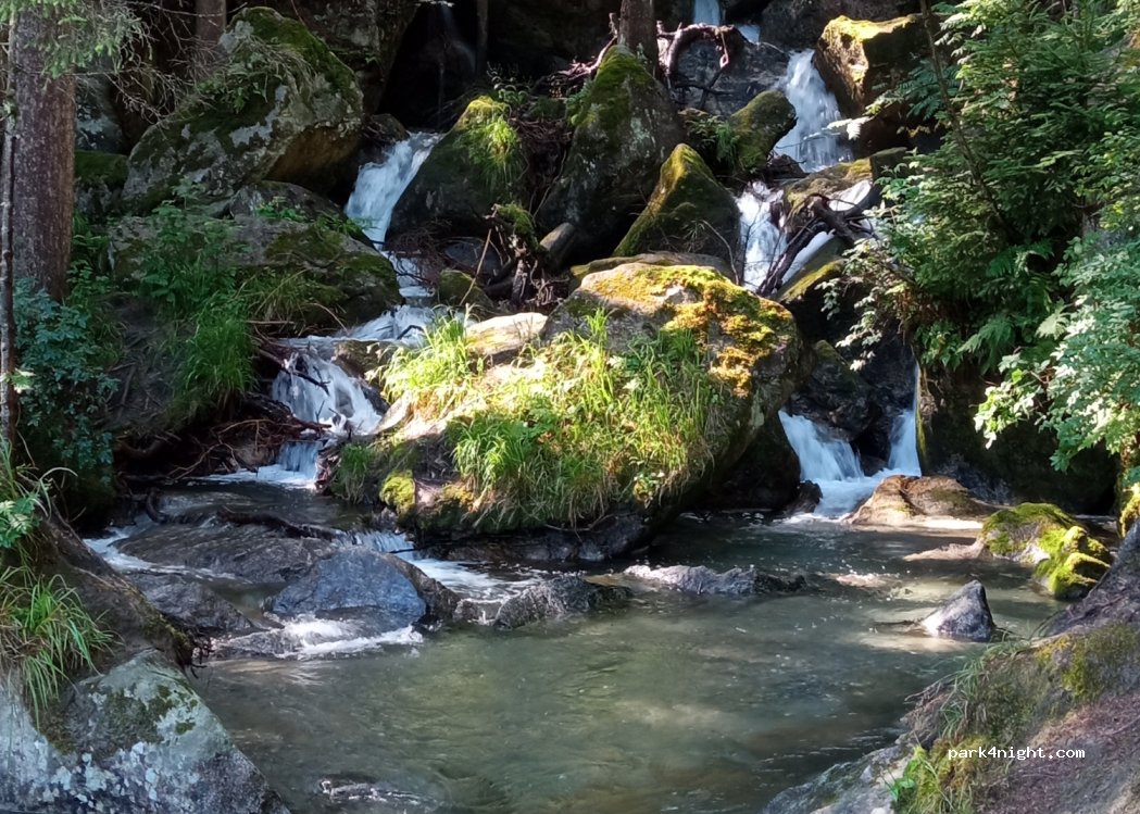 Tagesparkplatz mit Bouldergebiet und Bergwanderungen. Es gibt eine sehr schöne Brücke und einen See