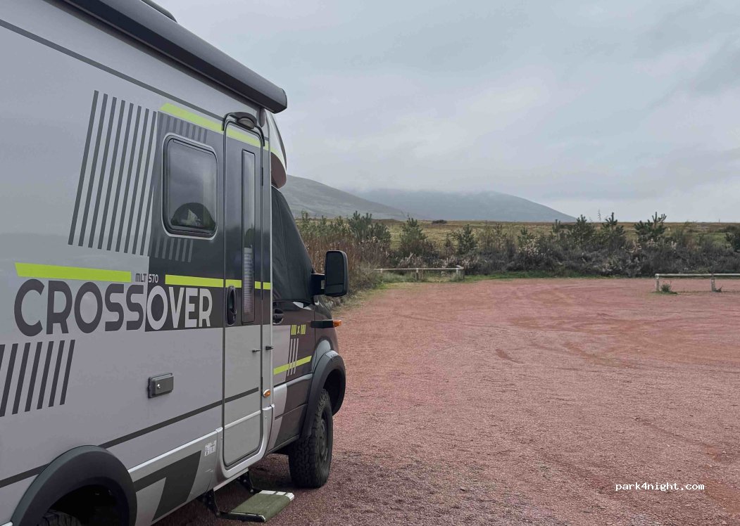 Großer Parkplatz für den Aufstieg zum Tinto Hill. Weit genug entfernt von der Straße, Mülleimer vorhanden. Der obere Parkbereich ist schon ordentlich schräg... Tags sehr belebt, nachts vermutlich ruhig. Wir blieben nur für die Wanderung. Leider wurde -oben vom Hill aus betrachtet- die schöne Natur zum Wohle des sogenannten Klimaschutzes mit etlichen Windkraftanlagen verschandelt.