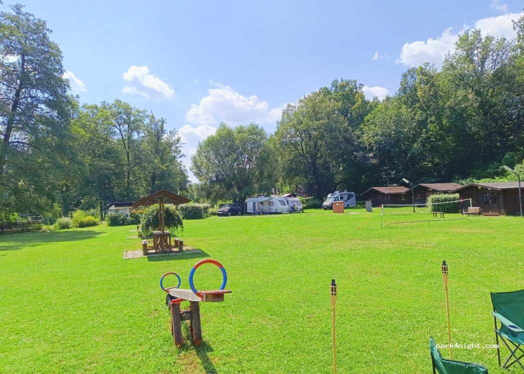 Wir wurden noch abends freundlich empfangen, die ältere Dame kam extra angeradelt. Ein toller Platz, wirklich alles da: komplett eingerichtete Küche, sauberste Sanitäranlage, Spielplatz, Sitzbänke (frei und überdacht). Ruhige Lage. Dass das Schwimmbad nicht in Betrieb ist, hat uns nicht geschmerzt. Und super preiswert! Sehr zu empfehlen. Die Umgebung haben wir nicht erkundet.