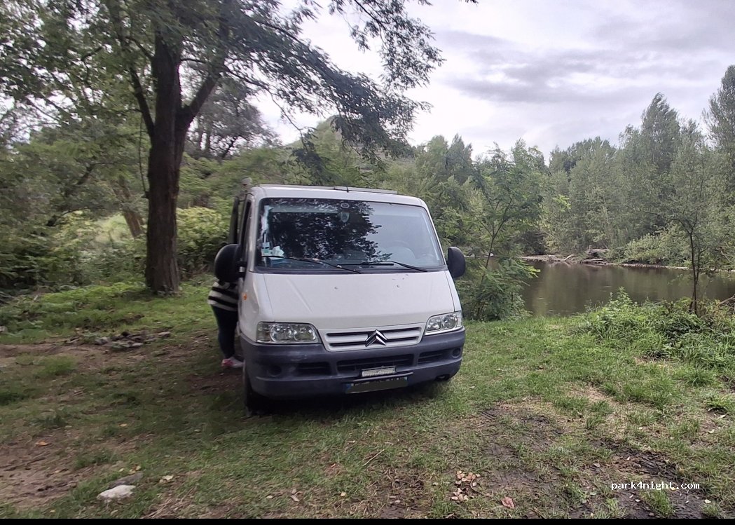 Très bel endroit, accès cahoteux mais ça vaut le coup. Plusieurs possibilités au bord de la rivière, le plus calme pour nous étant celui au fond à droite, pas de vis à vis, mais accès à l’eau difficile (2m de haut, nécessite échelle). Deux autres possibilités au bord de l’eau. On vous conseille d’aller à pied repérer les lieux car si il y a déjà du monde, vous serez bon pour une marche arrière.