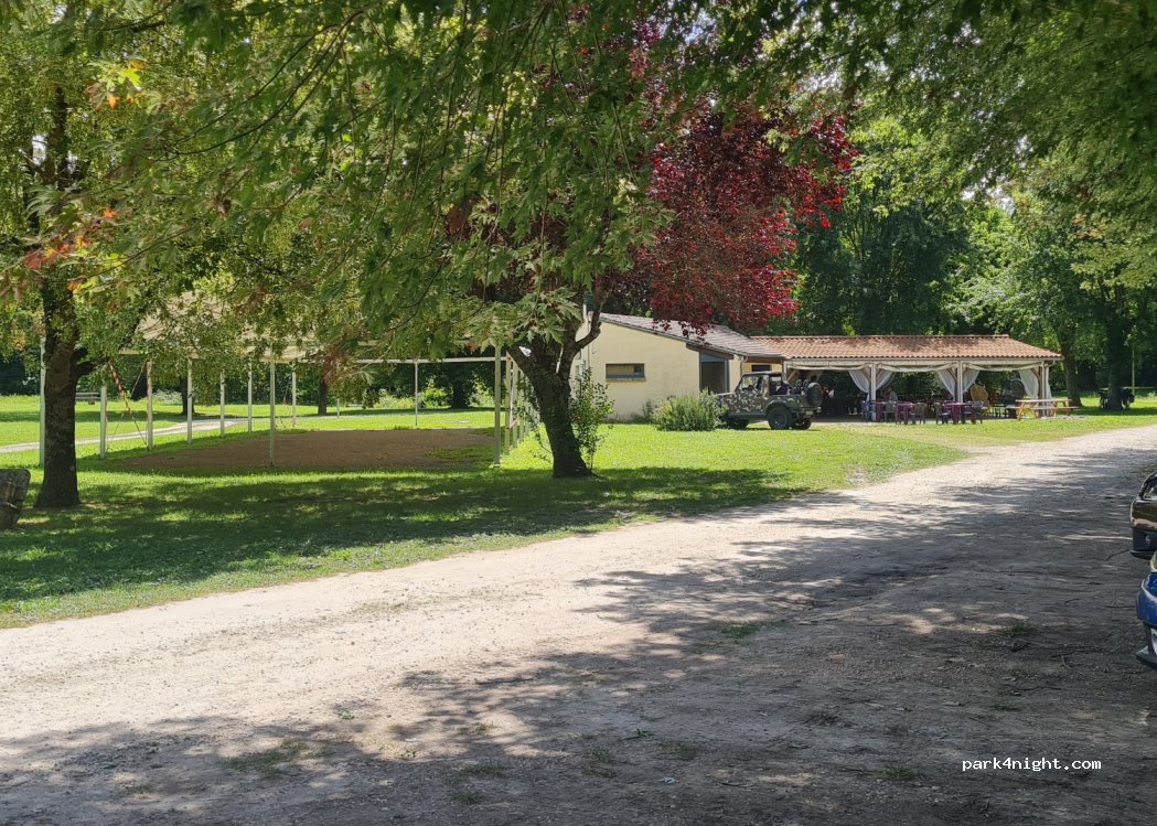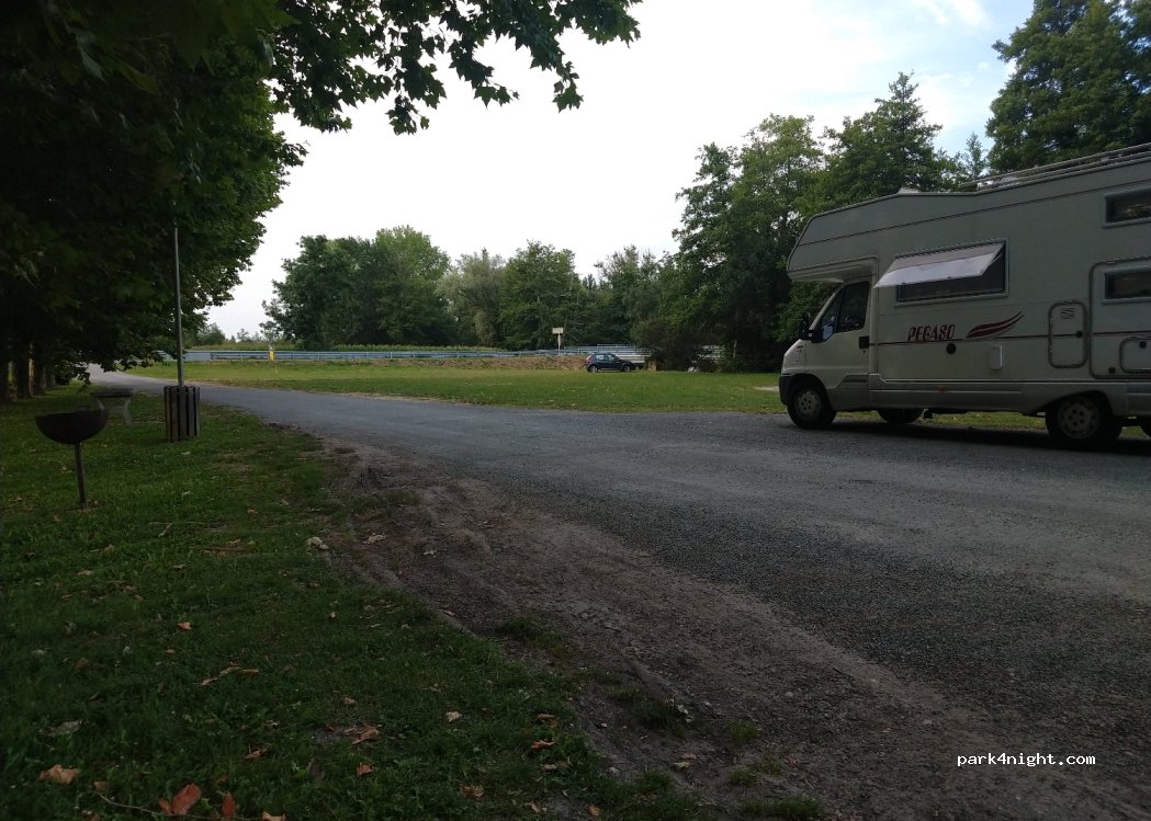 Une aire de pique-nique assez grande au bord de l'eau. Il fait frais de rester sous les platanes en été. Baignade interdite.