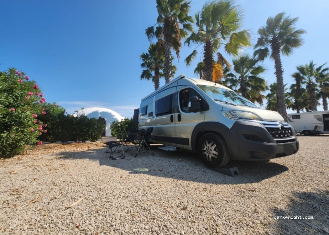Ende August waren wir die einzigen Gäste. Schön gestalteter Wohnmobilstellplatz, der zu einem Beachclub gehört. Keine Entsorgung von Grau- und Schwarzwasser möglich. Duschen und Toiletten vom Beachclub können auch nachts benutzt werden. 1 Stern Abzug, da es den letzten Tag kein Frischwasser mehr gab.