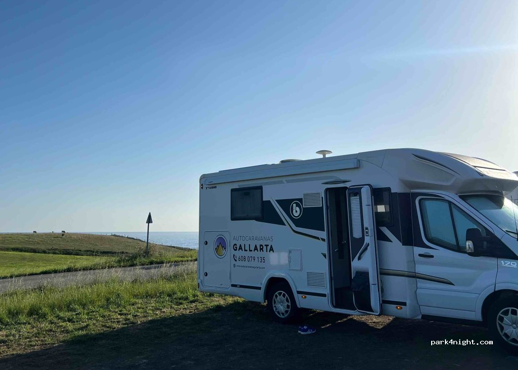 An area with large, demarcated spaces with drinking water and electricity in each space. It features hot showers (also for transit users), restrooms, a Wi-Fi zone, free bike rentals, electric scooter rentals, a swimming pool, a barbecue grill, a picnic area, a playground, daily bread and pastries, and a laundry area with a washing machine and dryer.