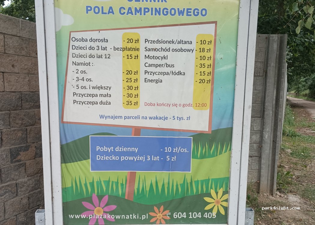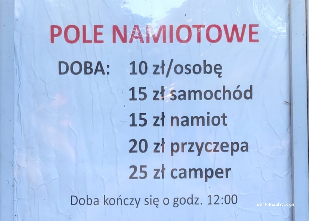 Tagesübernachtung 10 PLN/Person, Kinder ab 3 Jahren 5 PLN, Auto 18 PLN