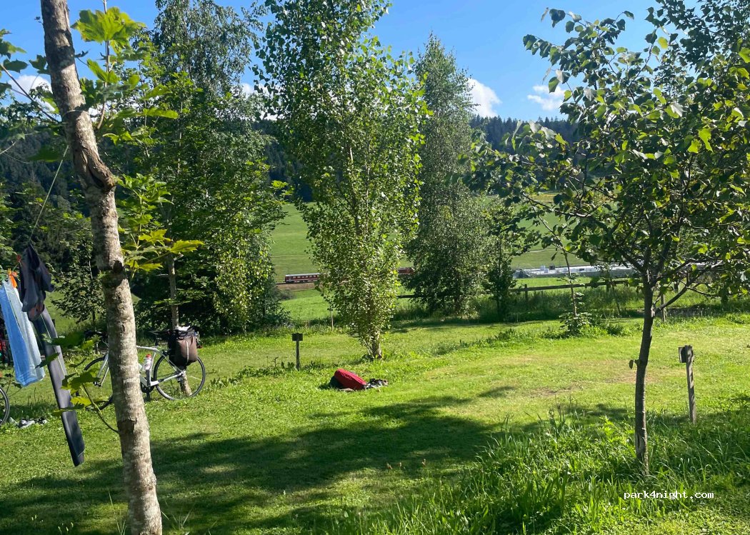 Beautiful small campground. Nice surroundings, great views. Pitches not huge but even despite being laid out on the slope. Sanitaries excellent and clean. Spent there three days late September - was ca 70% occupancy. No credit cards payment. Make sure you come with Swiss adapter if you want electricity (you can buy one in store downtown Tramelan (15 minutes walk).