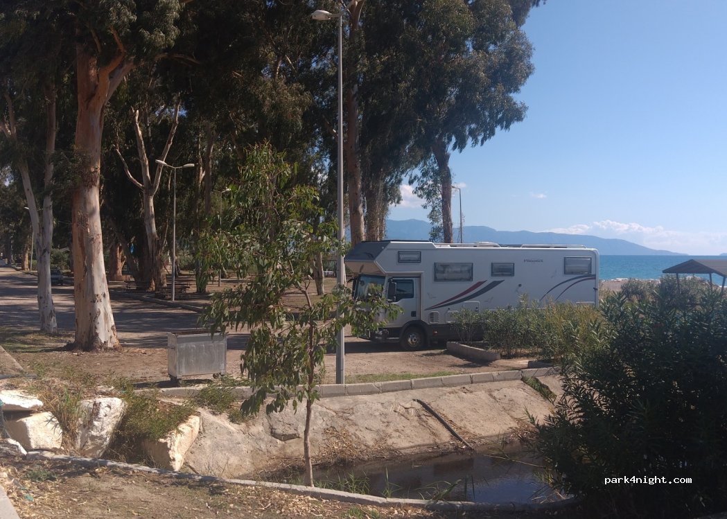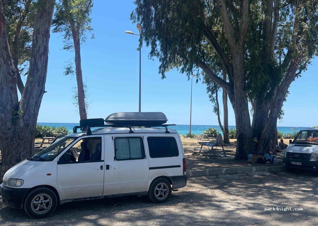 Picknickplatz mit Bäumen, Tischen und Grillplatz. Mit Zugang zum Strand! Wir haben hier nicht geschlafen, aber es ist ein idealer Ort, um der Hitze zu entfliehen.