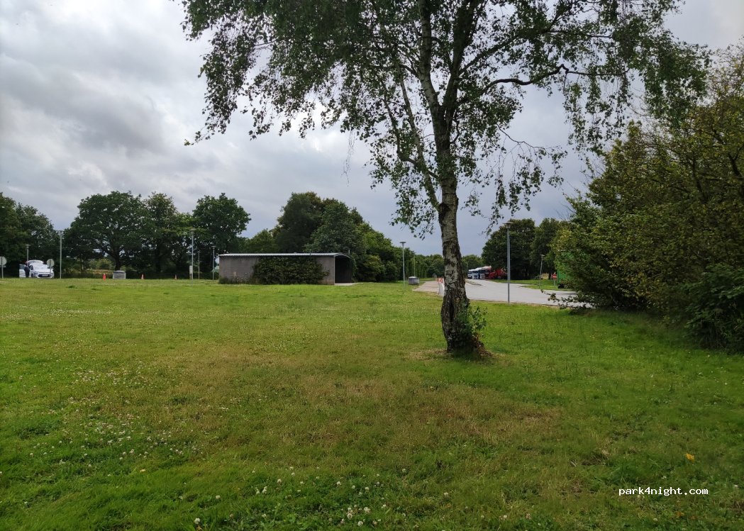 useful stop over on way to ferry. can't comment on loos as used onboard facilities. quite a number of trucks in lorry park. a fair way from main towns and feels safe.