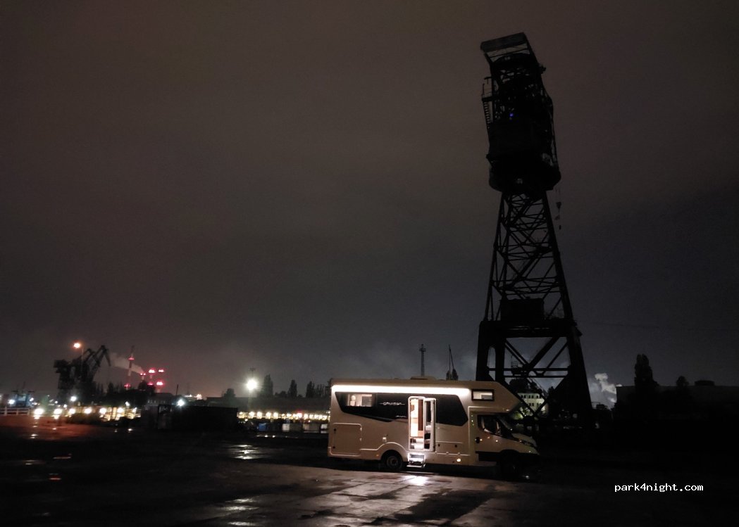 Tolle Möglichkeit in Danzig für wenig Geld zu parken und zu übernachten. Abends steht man hier fast alleine und Tagsüber als wir anreisten war nicht viel belegt. Die Kamera befindet sich oben am Schiffskran, auf den man auch hochgehen kann. Security haben wir nicht gesehen. Am Abend kommen viele Angler an den Kai. Man läuft ca 25 min in die Innenstadt.