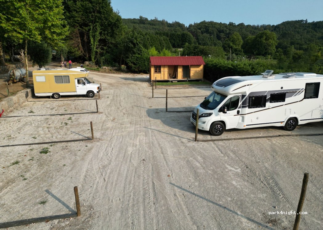 Lovely place to stay. Very friendly. Hot showers, washing up area, servicing area. The owners are planting trees for shade this winter (2023) and hedging around the whole area. There is a bus stop right outside with regular bus service to Guimaraes. Enormous, beautiful woodland surrounds the owners' magnificent home with lakes, old buildings and plenty of walking on site - just right for picnics!