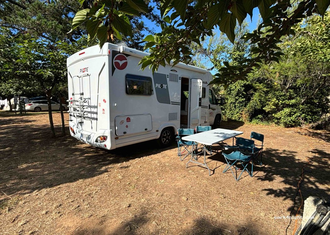 Wir waren für zwei Nächte dort. Sanitätbereich absolut sauber, so sauber wie auf manch 4 Sterne Plätzen nicht. Großzügige Stellplätze mit viel Schatten unter großen Bäumen. Morgens zwischen 8-9 kommt eine Bäckerin die frisches Baguette verkauft. Ein kleiner Supermarkt mit allem was man braucht befindet sind in der Nähe.Der Strand ist in 5 Minuten (E-Bike) erreichbar. Die Besitzer sind super.