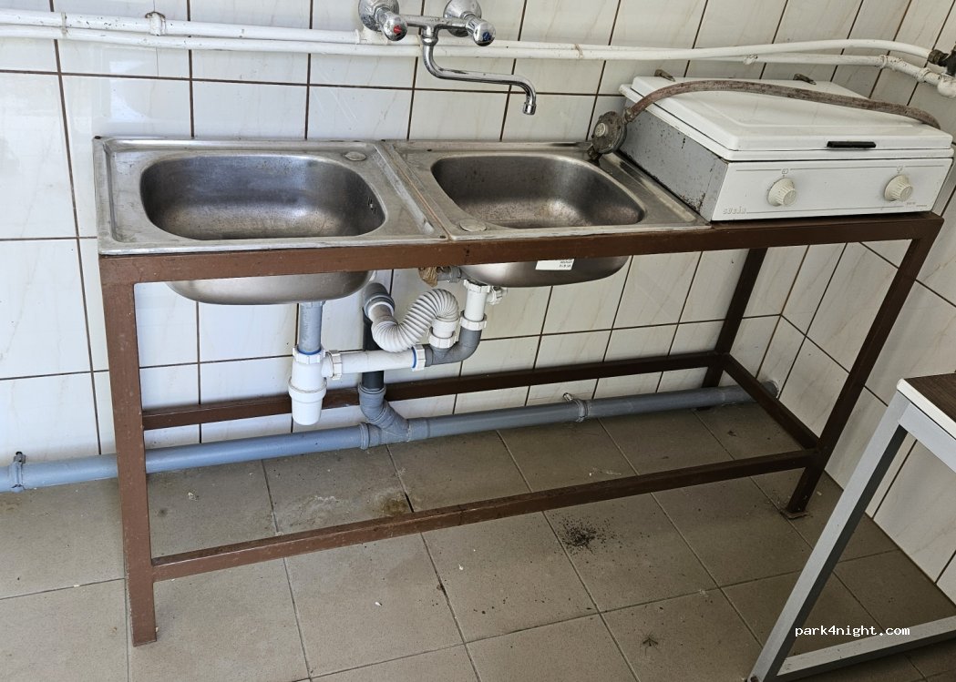 Het was voor ons niet duidelijk of de camping nog wel open is. Het zag er onverzorgd uit en het zwembad was leeg. Er was wel één toiletblok open en je kon water pakken in een soort van keuken. Geen wasmachine aanwezig. We zijn na een kwartier weer vertrokken. In principe kun je hier wel overnachten en naar het toilet.