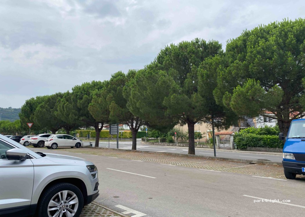 Kostenloses Parken die ersten 2 Stunden. Sehr ruhiger Ort, mehrere Parkplätze vorhanden. In der Nähe gibt es eine Bar mit sehr sauberen Toiletten!
