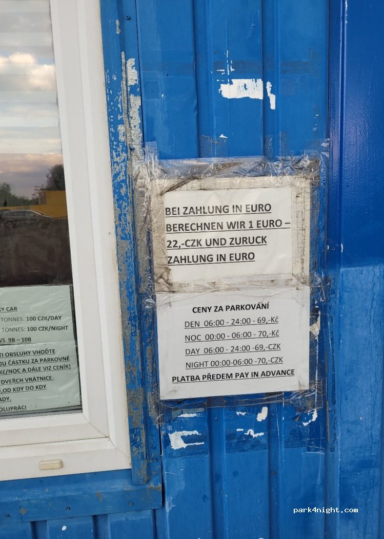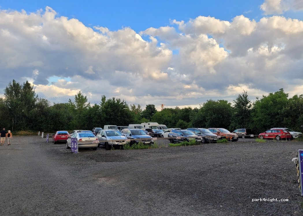 Parkplatz nahe der Bahn. Die Zufahrt ist sehr eng, ich bin mit meinen 5,90 m gerade so rein gekommen. Vielleicht kann man alternativ über die Ausfahrt rein fahren, da ist mehr Platz. Es gibt Tages- und Mehrtagestarife. Man kann auch in Euro zahlen.