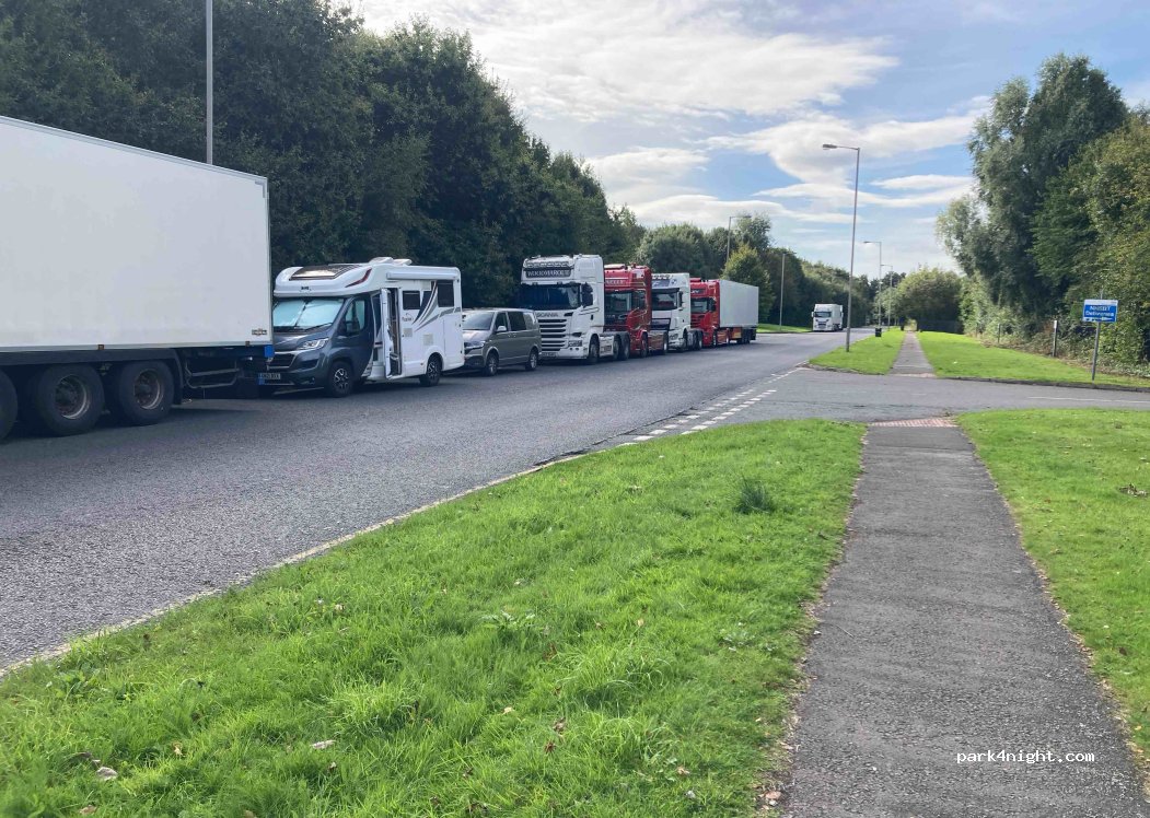 Is ok for a night, side of road to Speke Hall NT (worth a visit) next to NHS site so can have blue light and sirens. next to airport so you will hear aircraft noise. Lorries park up here as do taxis waiting for their pickups at the airport. Very bright street lighting. No services, but free. No restrictions, easy to Liverpool by bus from Estuary Banks or train from Liverpool South Parkway station.