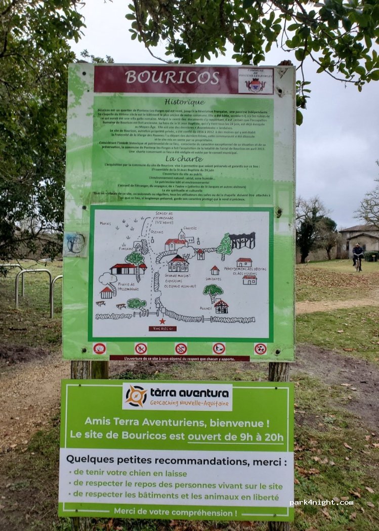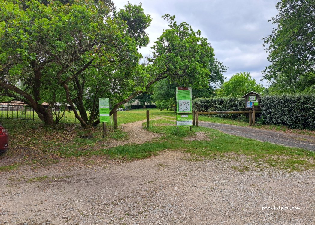 super spot pour passer une nuit au calme près de la forêt, loin de la route. zone près d'un point de visite avec peu de passage mais les bénévoles qui font la permanence nous a demandé de bien stationner a droite de la route quand on arrive afin de laisser la zone de parking libre aux personnes venant faire les visites du lieux endroit paisible agréable et très propre