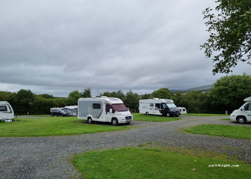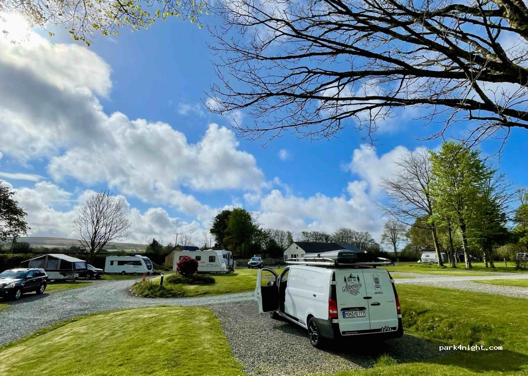 Lovely campsite. Great views of Dartmoor. Gravel standings and roads so good in all weather. Spotless facilities. Great pub a short walk away (also sells takeaway pizza). Short walk to Lydford Gorge and easy access to Granite Way - 9 miles traffic free up to Oakhampton on a disused railway. Easy y tu I access Dartmoor too. Highly recommend.