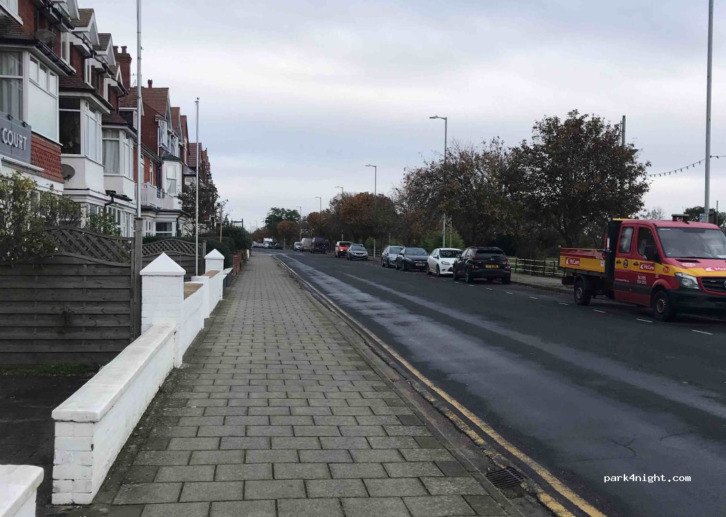 free parking, didn't park here overnight, but it looks like you could if you needed to. it is just parking on the side of the road opposite a few guest houses and care homes, seemed quiet and only a short walk into town. if you need to park in skegness and you have a roof rack, this is the place !