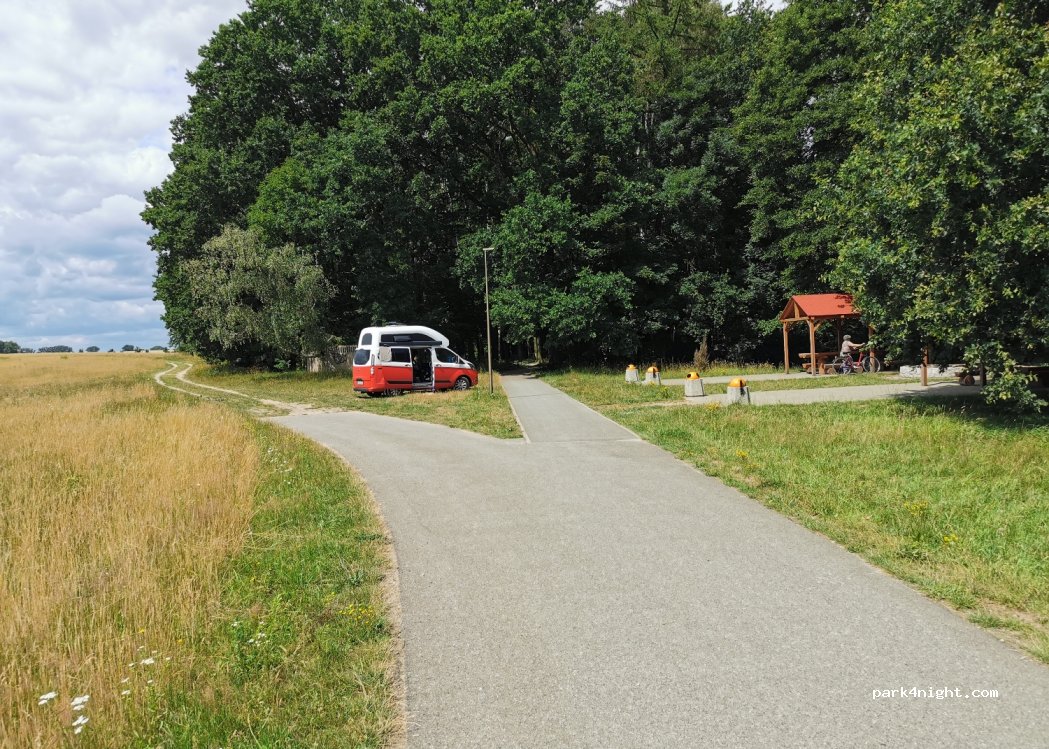Guter Ort für eine zwischen Übernachtung. Allerdings recht viele Menschen, die den Radweg nutzen. Leider kam bei uns auch zwei mal ein Motocross Motorrad vorbei und hat direkt neben uns aufgezogen. Vorsicht besonders mit Kindern. Leider komplett ohne Verstand! Die Nacht war dafür sehr ruhig und gegen Abend kam noch ein weiterer Bus.