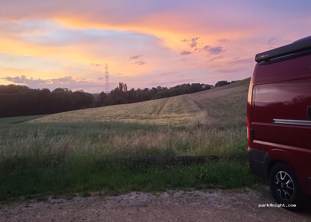 Très bel emplacement mais limité à 3,5t. Légèrement en pente, places assez longues pour se parquer, même avec 7,8m. Apparemment utilisé par des promeneurs ou des sportifs