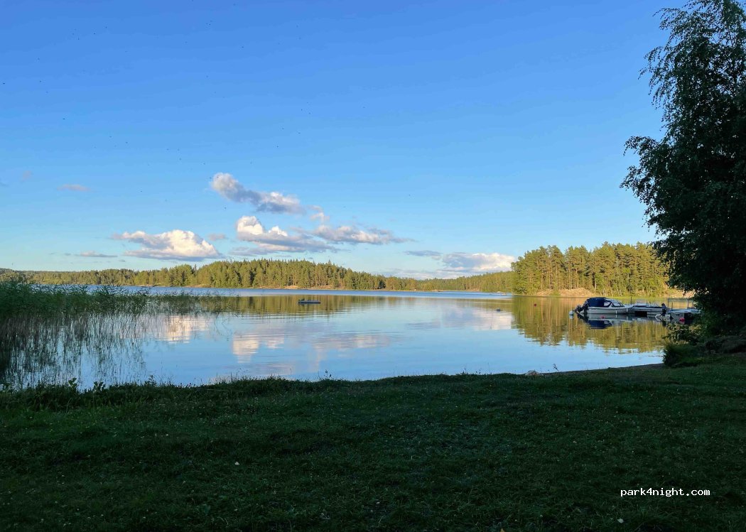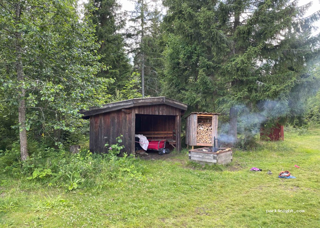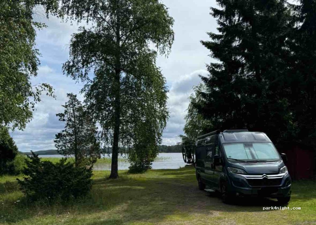 Bel endroit juste à côté d'une petite plage de sable sur un lac très clair. Il y a un petit cabanon avec barbecue et beaucoup de bois, également un banc et des toilettes primitives. Ne convient pas aux camping-cars, accès par une longue route de gravier qui se termine assez raide. Aucun problème pour notre VW T3.
