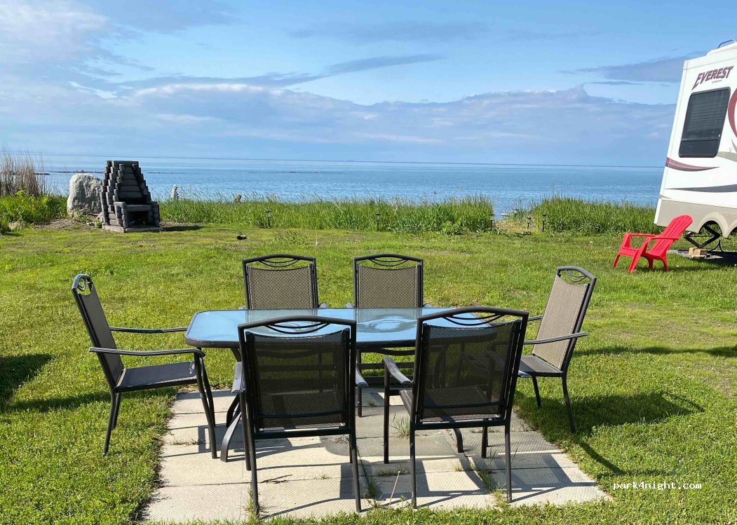 Waren Mitte September für eine Nacht hier. Kleiner Platz mit 3 way service, direktem Strandzugang und kurzem Fußweg zum Leuchtturm und dem Empress of Ireland Museum. Ruhig, obwohl direkt an der Straße.