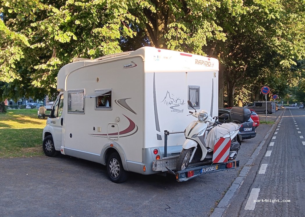 The space is flat and fits a 7 meter motorhome. The night was silent and it is in front of the Red Cross, which always provides some protection. There are plenty of places and in summer at least there shouldn't be any problems with parking or shade. The tourism center is a 17-minute walk away