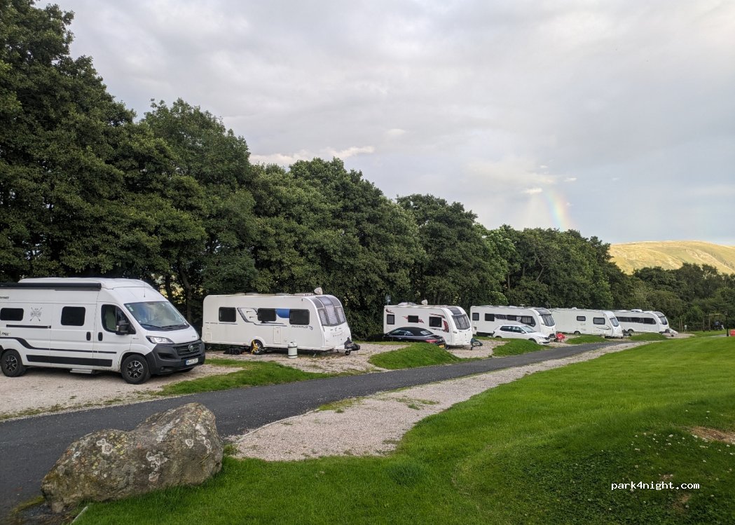 Nice place, handy for hiking a few fells (little mell, great mell, gowbarrow). Lovely wardens/owners. Nice views, quite peaceful! There is a freezer and microwave for you to use free of charge. Shower block basic but everything you need. 20p for hairdryer use. Some phone signal on three but patchy. Few mins walk to ‘The Quiet Site’ which has a shop and pizza van. We paid £43 per night with EHU.