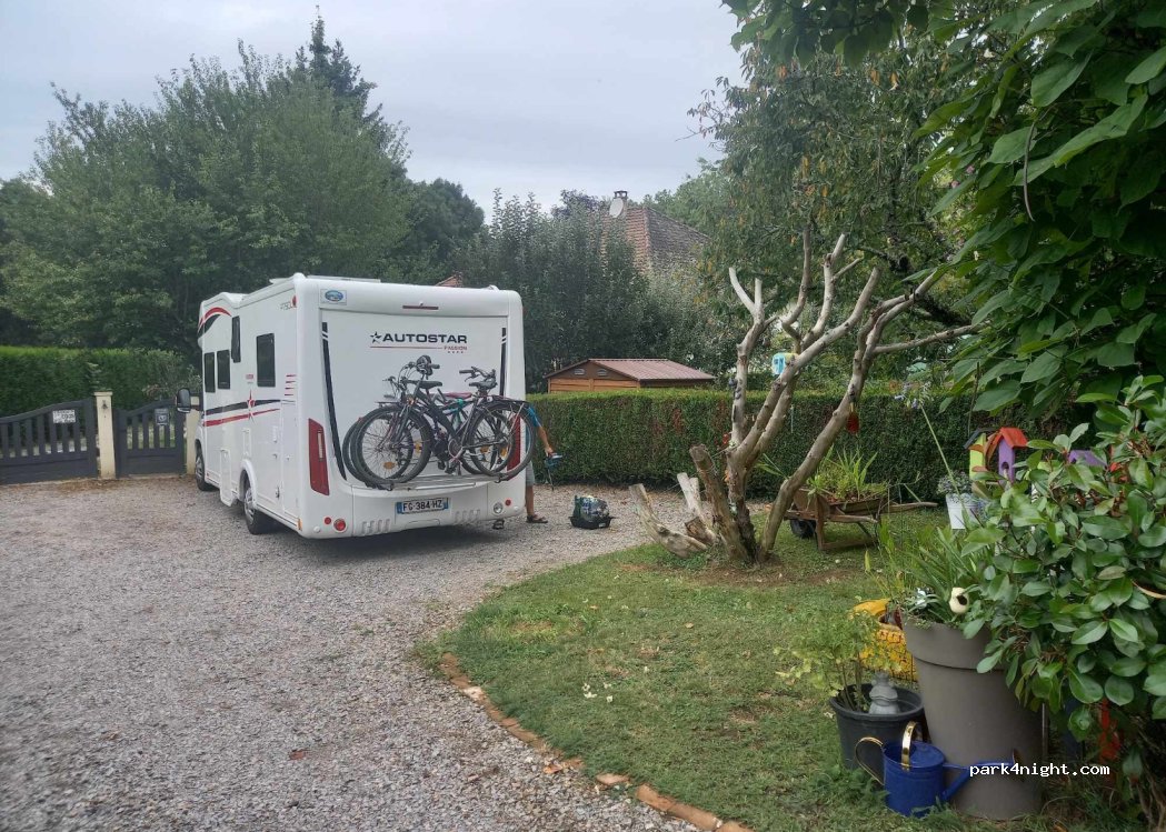 At the entrance to Couzeix, near Limoges, on a private fenced property, parking space for motorhomes (approximately 10 m long), accessible 24 hours a day. The place is quiet between town and countryside, a short walk in the forest right next door is possible. Animals are accepted because the pitch is completely fenced (street and owner side) and we have dogs, cats and chickens ourselves. The place is ideal for a quiet break for a night, a day or more....