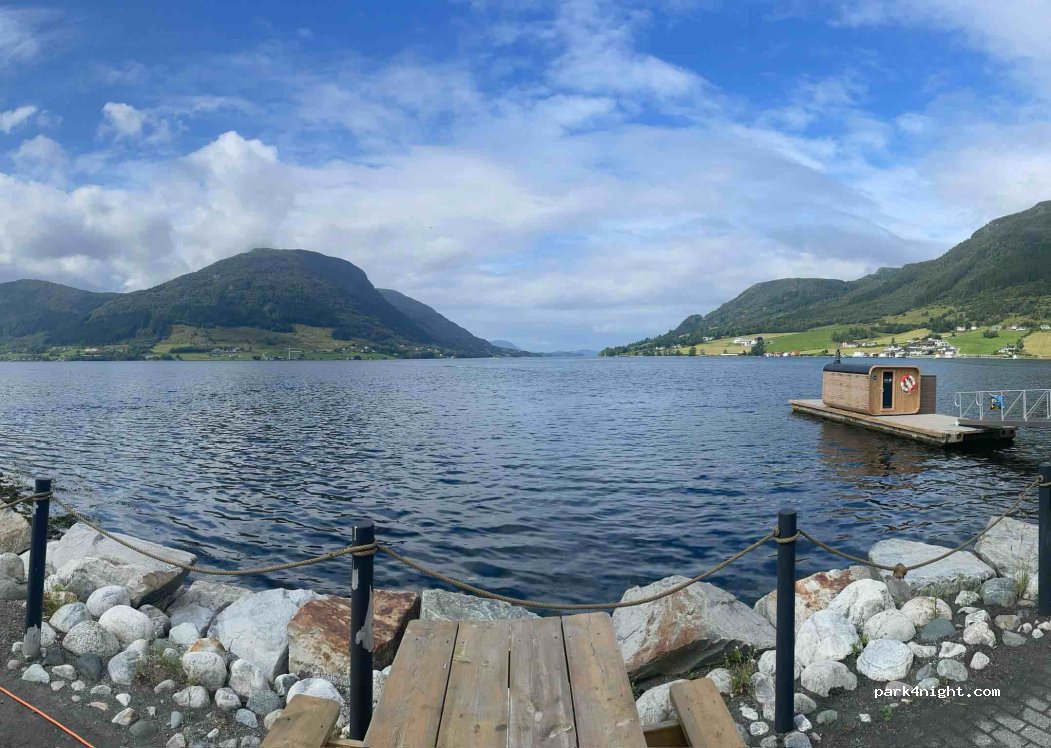 Schön gestaltete Asphaltfläche. Vier Plätze vorne mit toller Aussicht und Strom, vier Plätze hinten ohne Strom. Wasser und Müllentsorgung vorhanden. Kein Ablasser, keine WC-Entleerung. Toilette und Dusche im Fitnessstudio, nicht genutzt. W-LAN kostenlos über PIN am Schild. Bezahlung über QR-Code. Für 250 NOK gerne wieder!