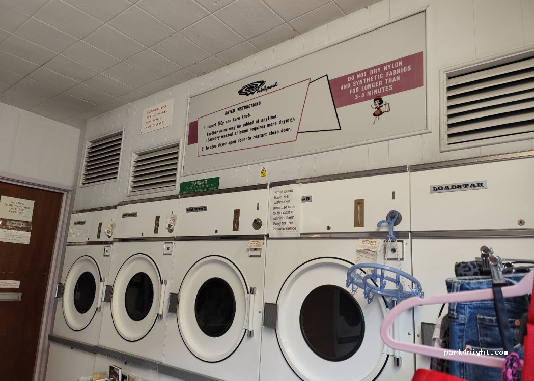 Laverie. petit mais propre et les propriétaires sont très sympathiques. ils ont réduit à un seul grand séchoir au lieu de 6 car cela coûte trop cher à faire fonctionner. même ainsi, n'était pas du tout occupé après 1700.